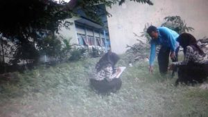 Gambar 1. Siswa melakukan pembelajaran Contextual Teaching and Learning  dengan  mendata komponen biotik dan abiotik selanjutnya menentukan urutan rantai makanan disertai jaring-jaring makanan di lingkungan sekolah