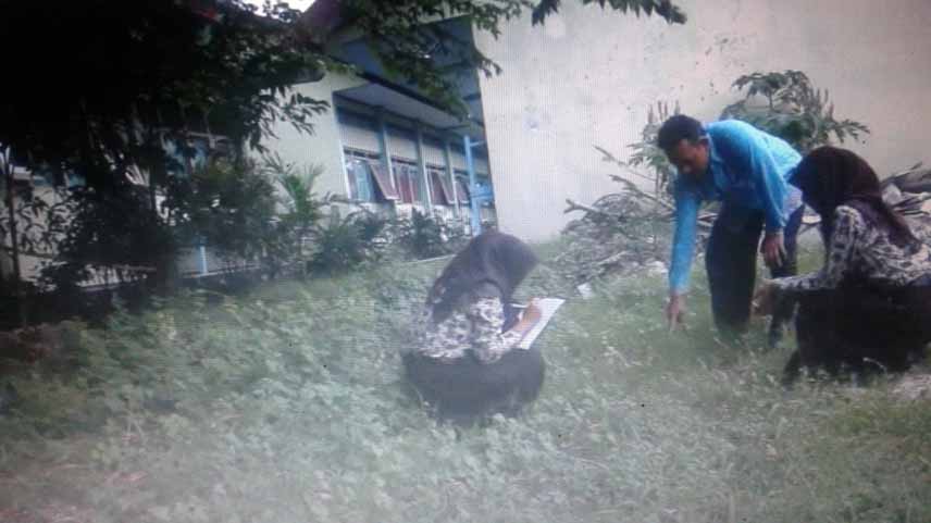 Gambar 2. Siswa melakukan pembelajaran Contextual Teaching and Learning  dengan mengobservasi hubungan antar organisme dalam ekosistem di lingkungan sekolah
