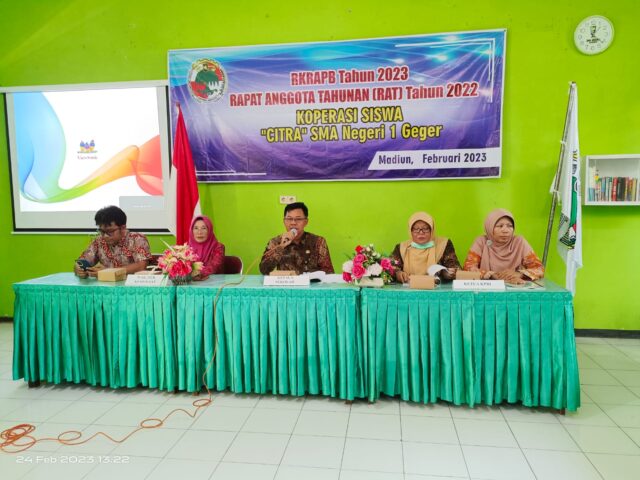 PAda Hari Jumát 24 Februari 2023 Koperasi Siswa “Citra”SMA Negeri 1 Geger mengadakan Rapat Anggota Tahunan (RAT). Pada kegiatan RAT ini dihadiri oleh Bapak Kepala Sekolah, Bapak dan Ibu Guru Wakasek dan Pengurus Koperasi serta seluruh anggota Koperasi Siswa.
