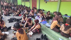 Pelatihan Pramuka yang dilaksanakan di lapangan tengah, tepat di depan bangunan Proyek Ruang UKS(Usaha Kesehatan Sekolah)