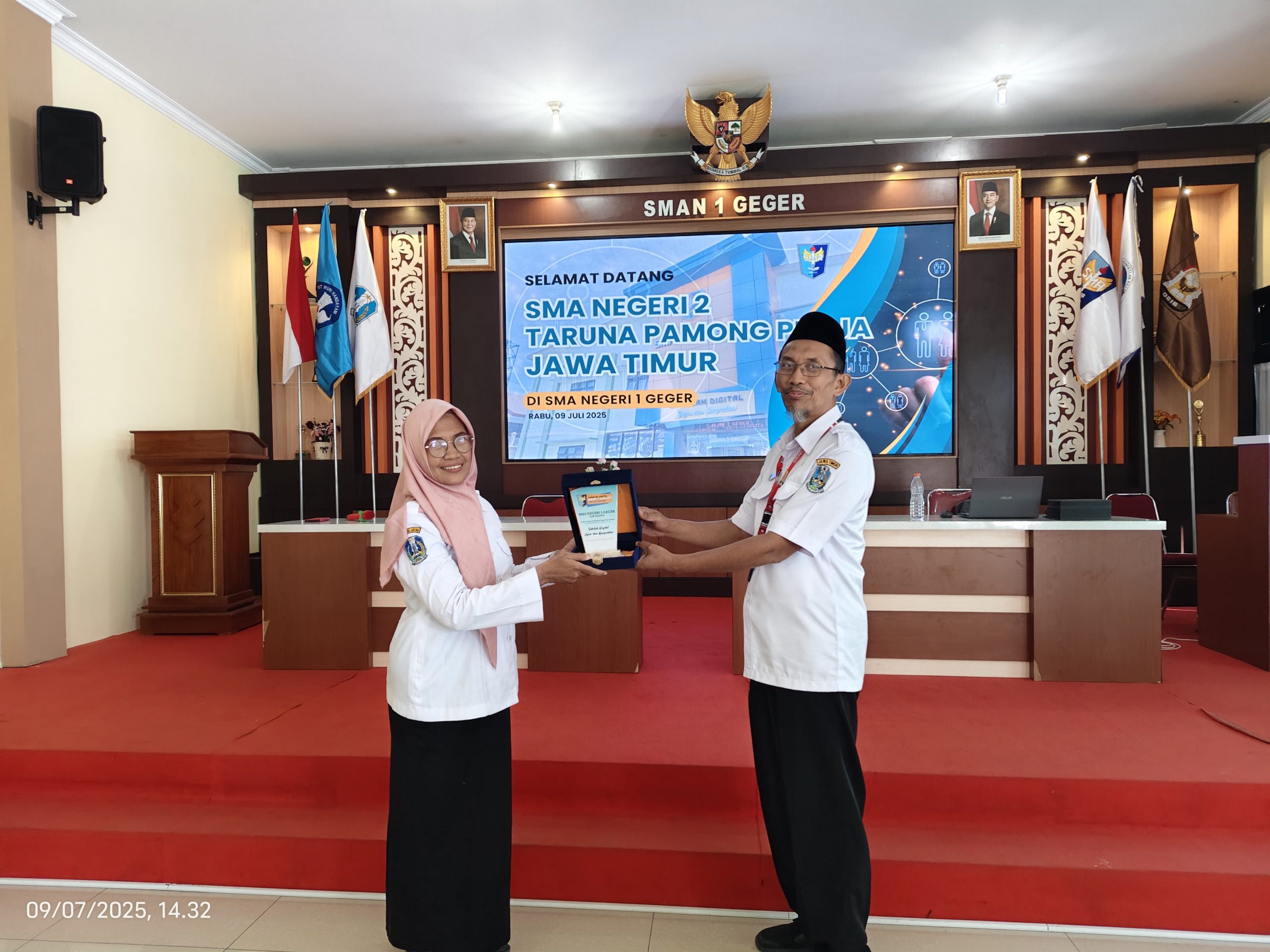 Geger, 9 Juli 2025 — SMA Negeri 1 Geger menerima kunjungan studi tiru dari SMA Negeri 2 Taruna Pamong Praja Bojonegoro dalam rangka menggali praktik baik terkait digitalisasi sekolah dan implementasi e-learning. Kegiatan ini menjadi ajang berbagi pengalaman dalam membangun lingkungan belajar berbasis teknologi.