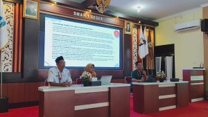 Usai berkeliling, peserta studi tiru diarahkan ke Ruang Pertemuan SMAN 1 Geger untuk mengikuti sesi pemaparan materi mengenai digitalisasi sekolah dan pemanfaatan e-learning. Materi disampaikan oleh tiga narasumber utama: