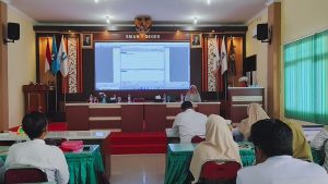 Acara kemudian berlanjut pada sesi pemaparan materi. Bapak Lathif Zamroni, S.Kom., M.Pd menyampaikan materi mengenai implementasi digitalisasi sekolah di SMAN 1 Geger. Selanjutnya, dua perwakilan siswa, Farisa Fernanda Aulia dan Setya Elica Frederica, turut berbagi pengalaman mereka dalam menggunakan e-learning Moodle, baik untuk mendukung pembelajaran maupun untuk kegiatan OSIS dan MPK.