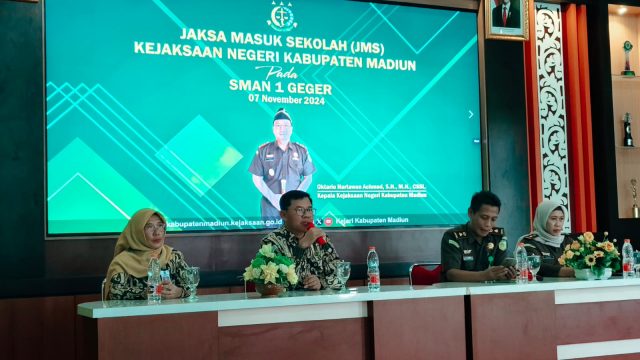 Kejaksaan Negeri Madiun mengadakan program Jaksa Masuk Sekolah di SMA Negeri 1 Geger pada hari Kamis (7/11). Program ini bertujuan untuk memberikan pemahaman mendalam kepada para siswa mengenai bahaya judi online dan pentingnya ketaatan terhadap hukum sejak usia muda. Dalam sosialisasi ini, jaksa yang hadir menjelaskan kepada para siswa tentang dampak negatif dari judi online, mulai dari risiko kecanduan, kerugian...